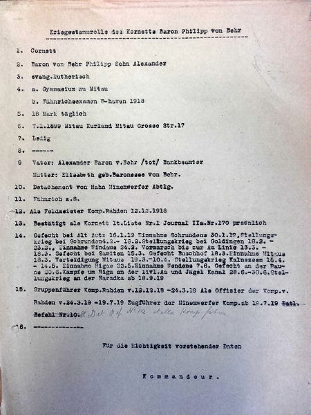 - Baltijas landesvēra virsnieka Filipa fon Bēra izziņa ar biogrāfijas datiem.