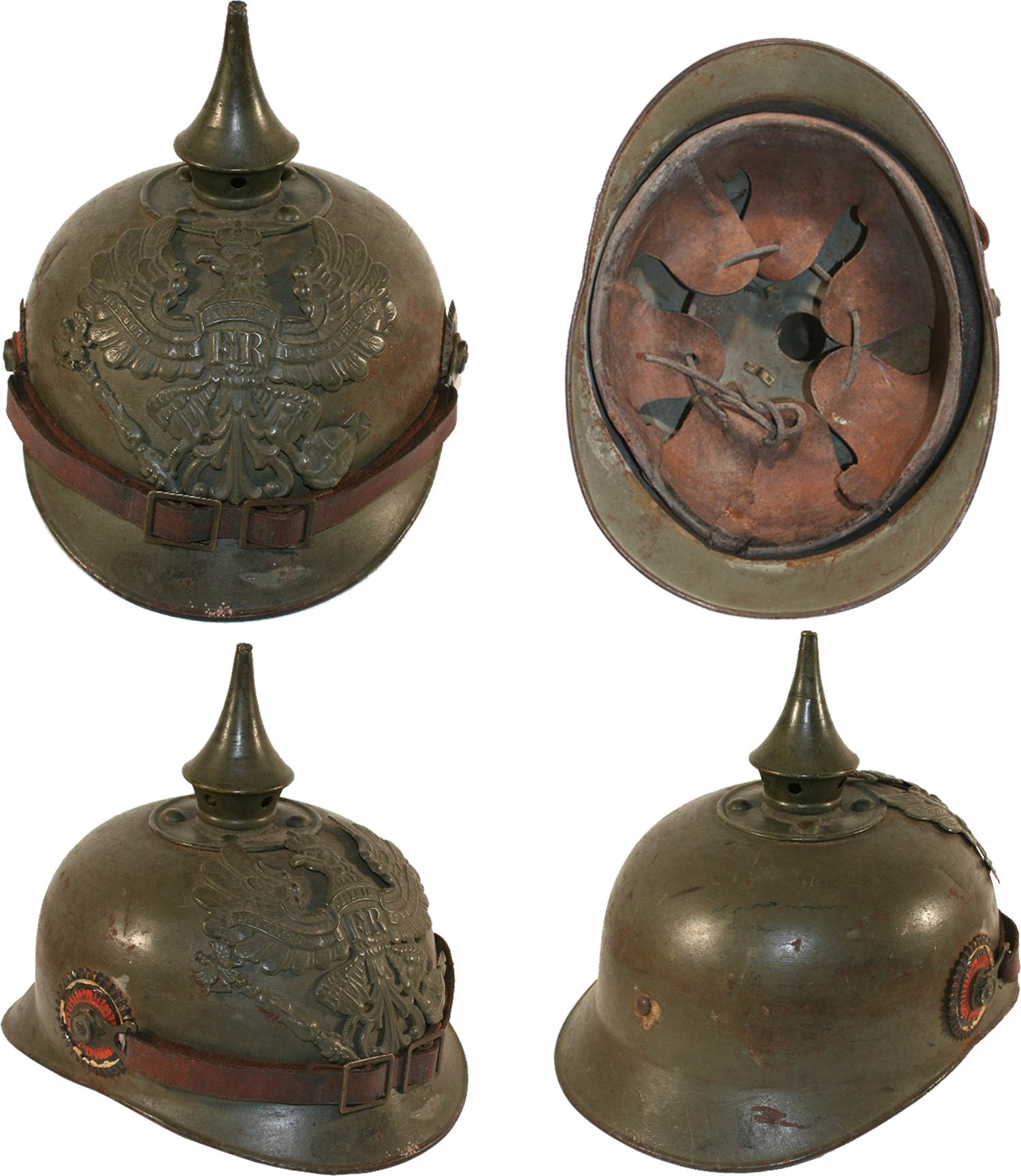 - Pīķakaska, kājnieku apbruņojumā, gatavota no štancētas alvas. Modelis 1915 (M-91 siksnas). Prūsijas kokarde.