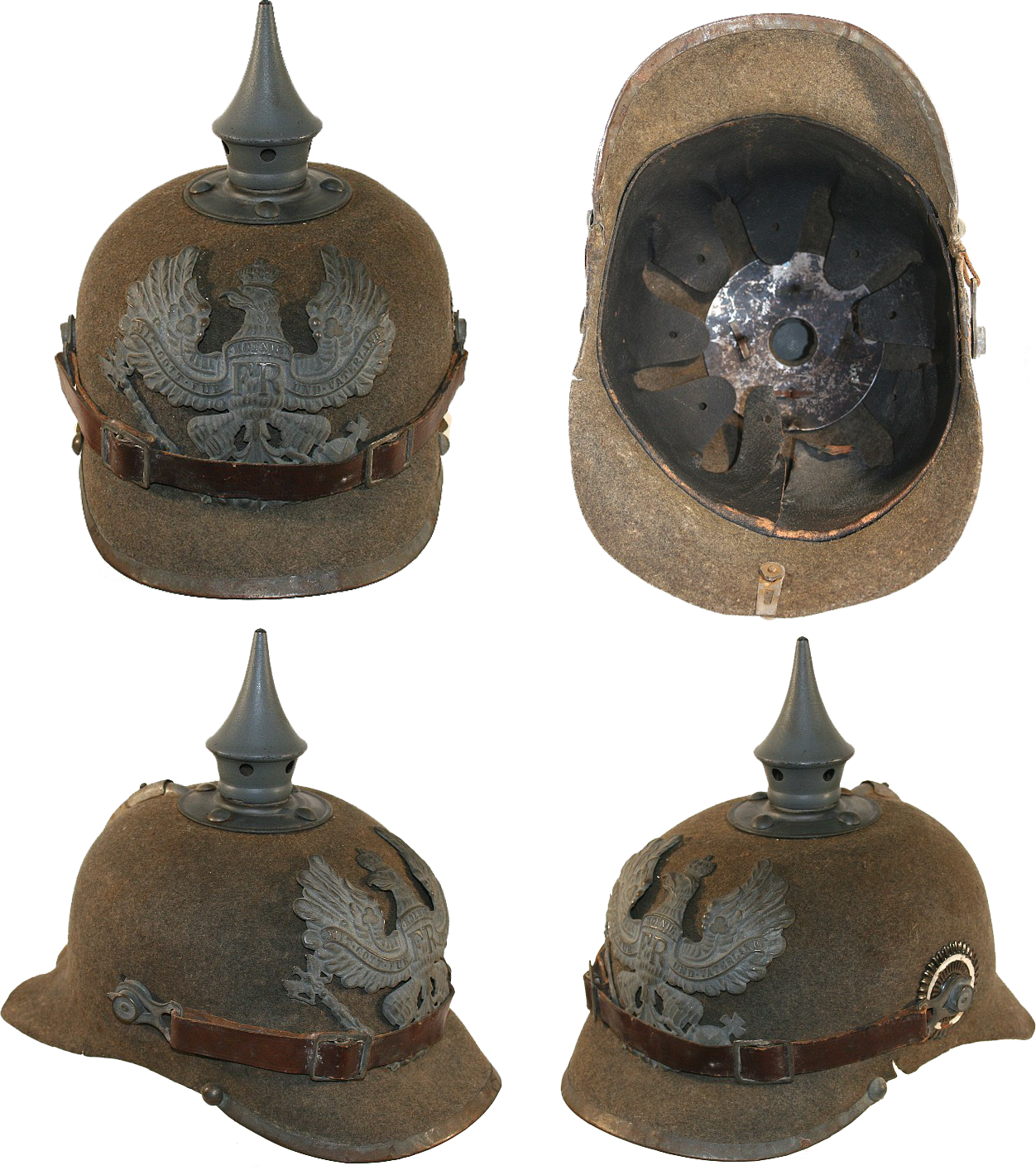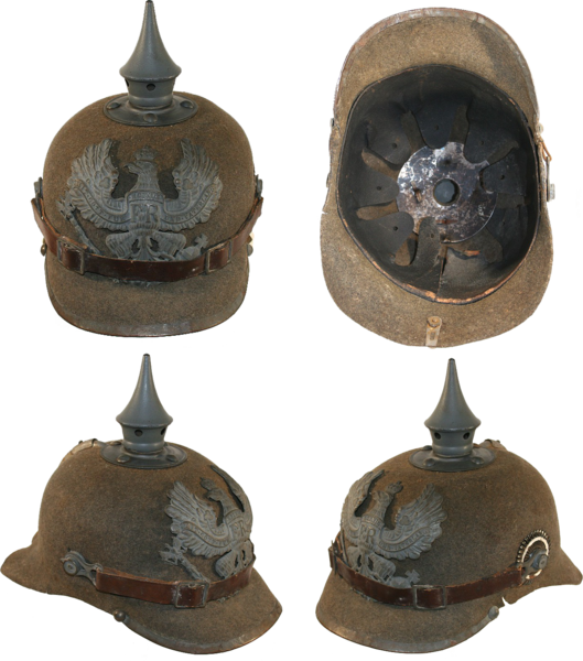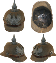 - T.s. "erzac" pīķakaska, kājnieku apbruņojumā, gatavota no presēta filca (tādas gatavoja ari no citiem materiāliem, piemēram, no nekvalitatīvas ādas vai pat presēta kartona). Modelis 1915 (M-91 siksnas). Prūsijas kokarde.