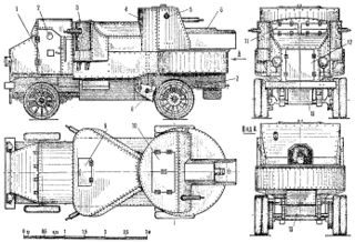 - Гарфорд-Путилов (Garford-Putilov) bruņotā automobiļa shematisks zīmējums.