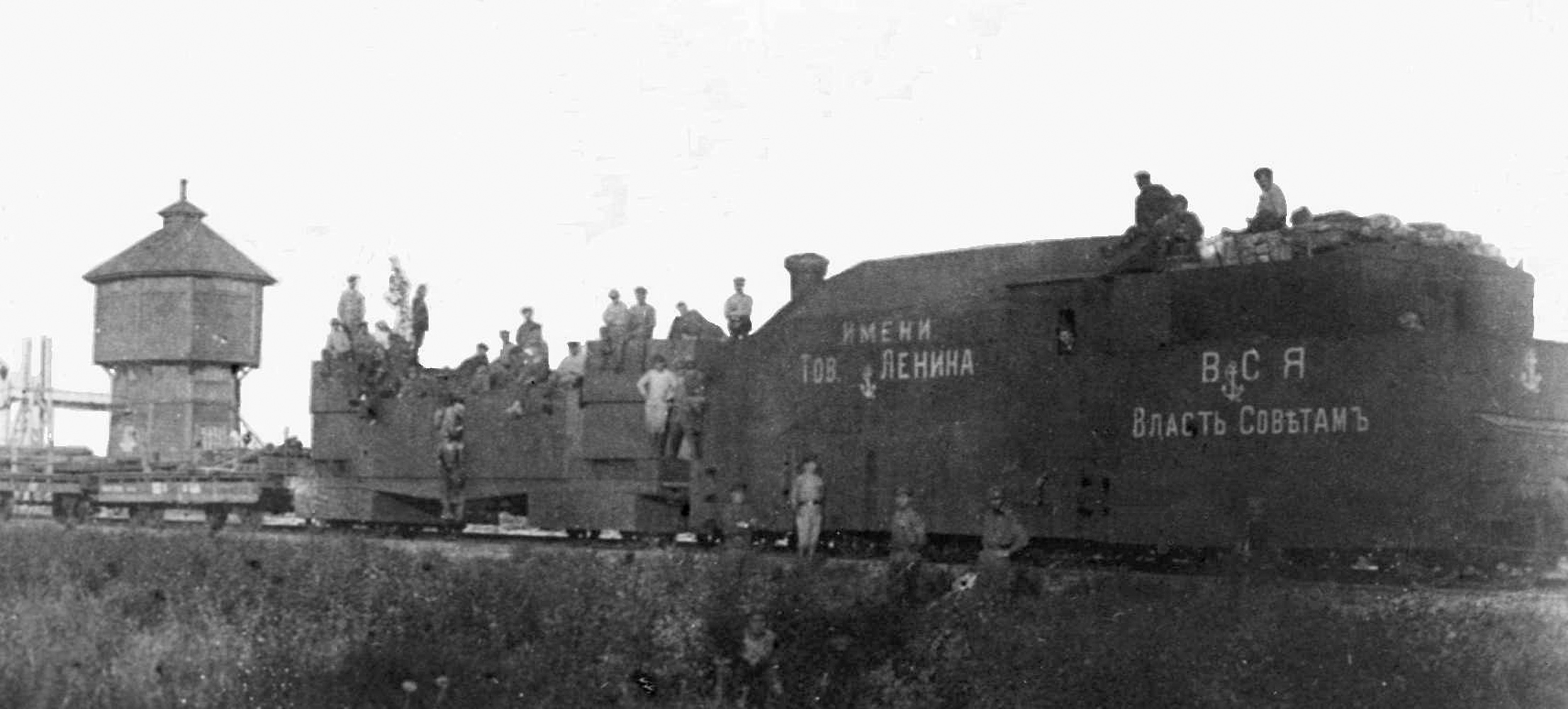 Bruņuvilciens №6 "Путиловцы" имени тов. Ленина" Karamiševo dzelzceļa stacijā, 1919. gada vasara. Fotogrāfijas autors nav zināms.