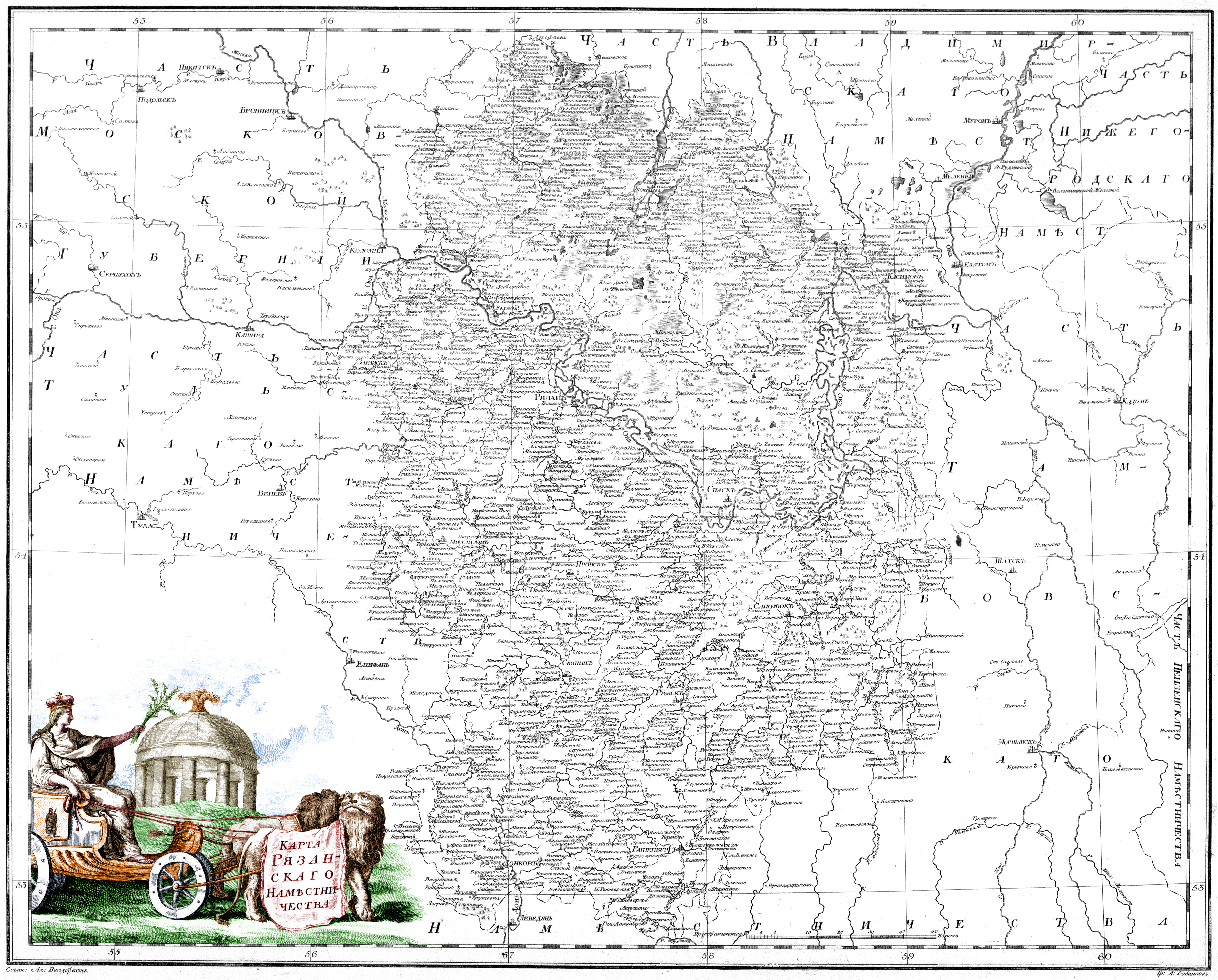 Rjazaņas vietniecības karte (1792.). Avots: http://www.redkie.ru/map/Rias_1792.jpg