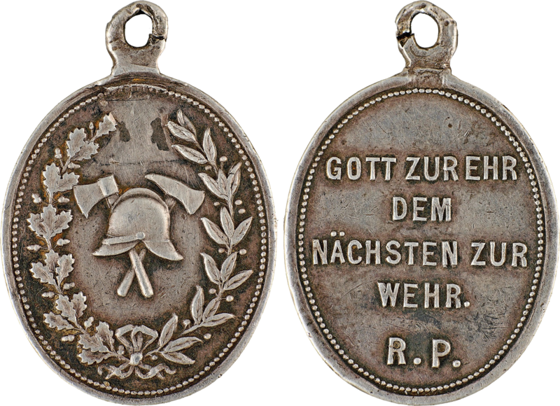 • Rīgas Patrimoniālā apgabala ugunsdzēsēju biedrības žetons (kr. Жетон наградной Рижского Патримониального общества в Риге Лифляндской губернии)