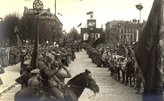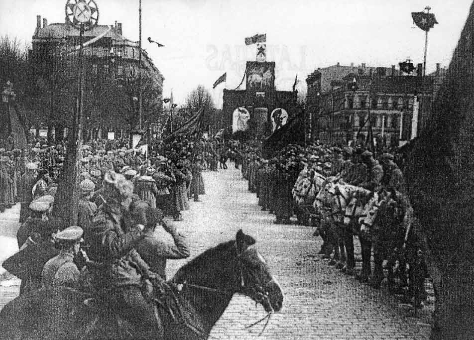 - Latviešu sarkano strēlnieku parāde Rīgā, pie Pētera I pieminekļa postamenta.