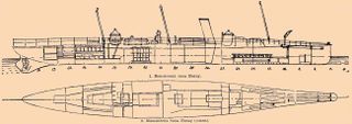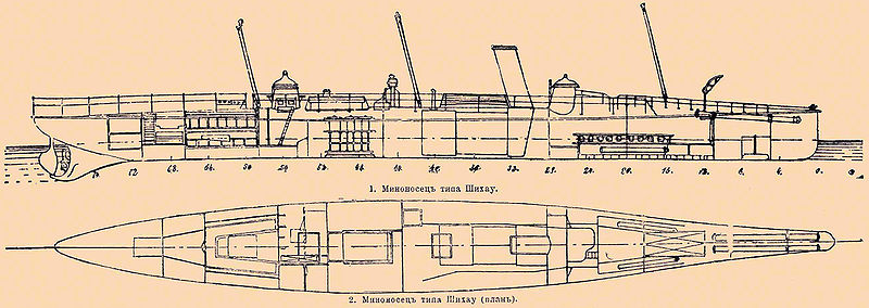 XIX gs. beigās Vācijā, Elbingenā "Šihau" dokos (Schichau Seebeckwerft) būvēto mīnu kuģu tipa shēma. Attēls no: http://gatchina3000.ru/006/b37_384-0.jpg