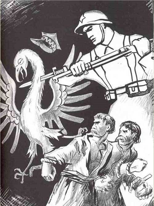 Attēls no: http://www.hortuscarmeli.ms/wang/brest/soviet-plakat-1939-red-army-killing-polish-eagle.jpg