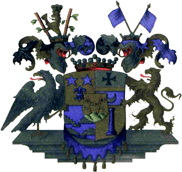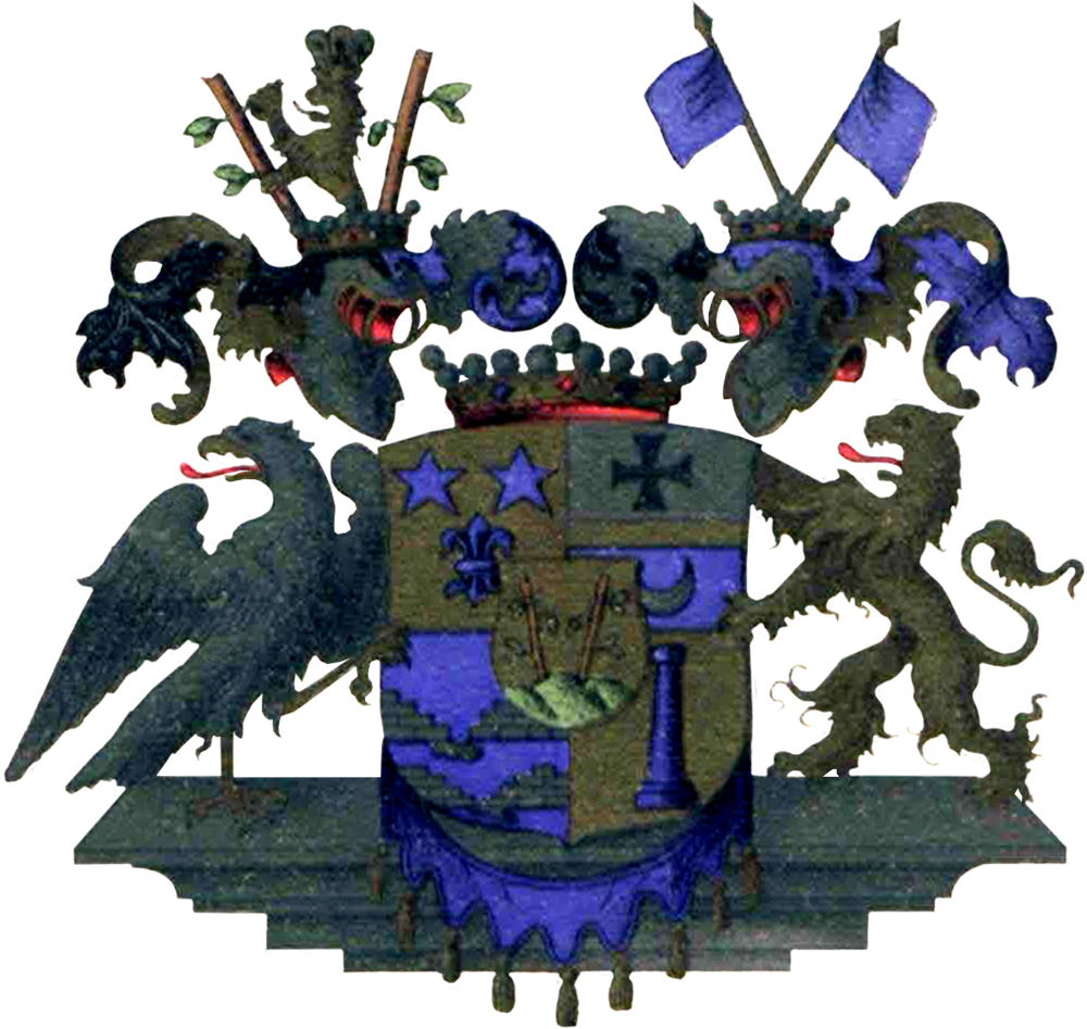 - baronu Štakelbergu no Tomeles ģerbonis (Baron Stackelberg a.d.H. Thomel, L.E.K.Ö. Schwed. Freih. 6.6.1714. Dipl. 23.3.1719.).