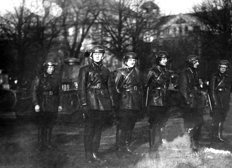 Latvijas armijas tankisti parādē. 1930. gadi. Fotogrāfijas autors nav zināms.