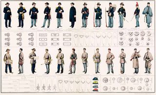 ASV un konfederātu armiju uniformas pilsoņu kara laikā. Attēls no: http://www.cossacks.sztab.com/grafika/USA/units.jpg