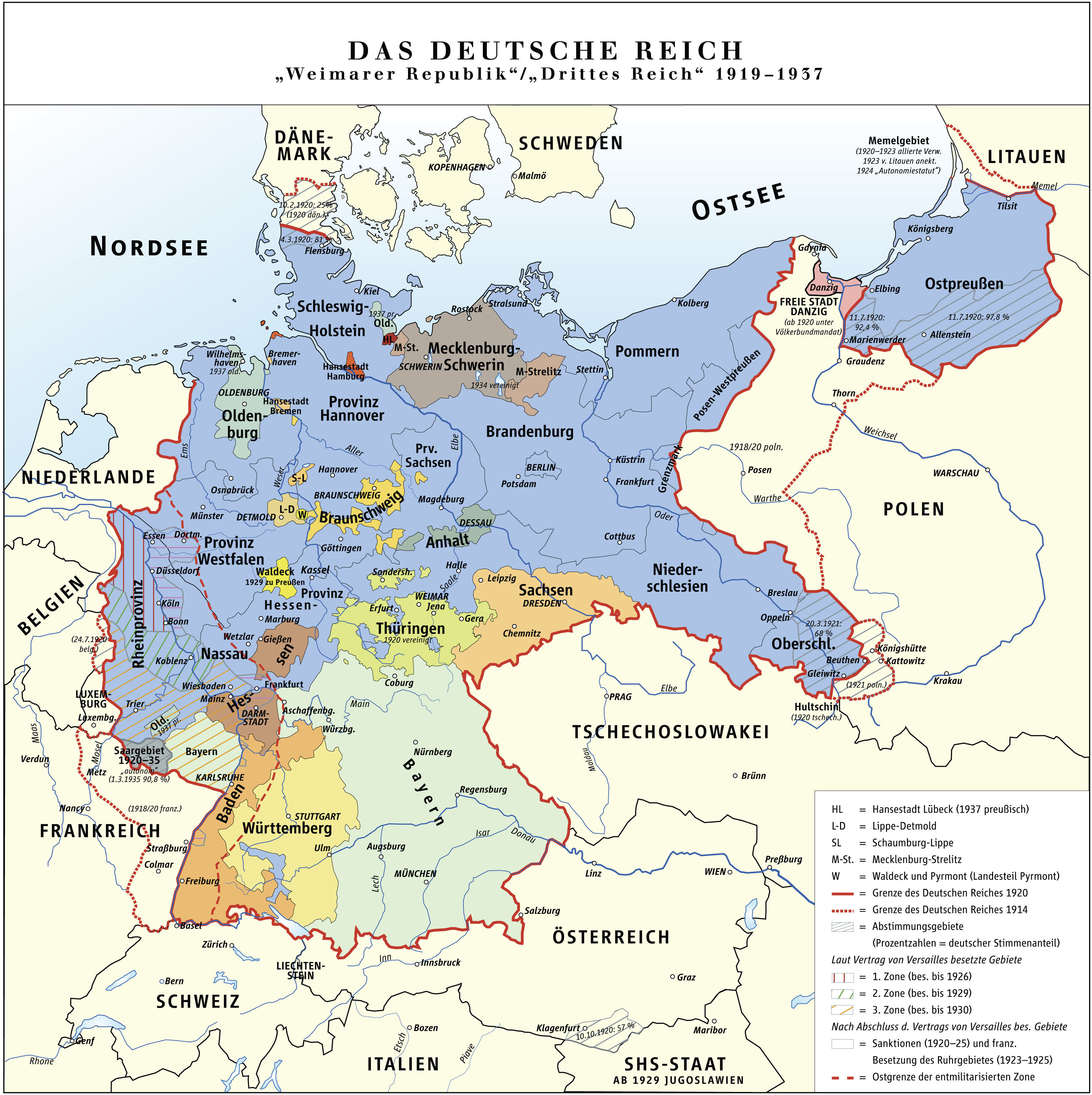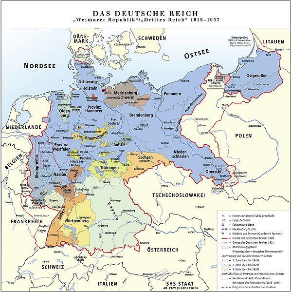 Veimāras Republikas karte. Avots: Putzger – Historischer Weltatlas, 89. Auflage, 1965