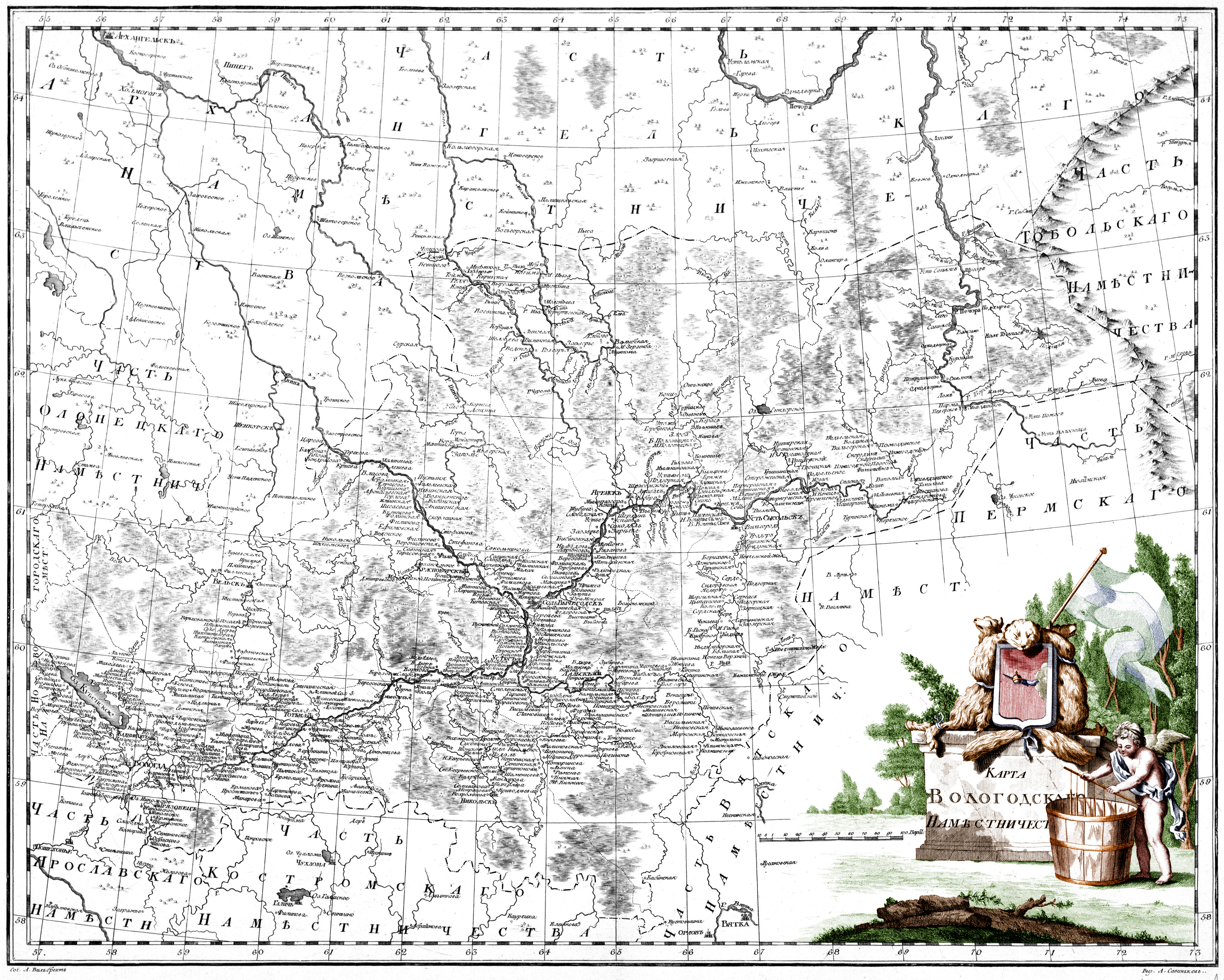 Vologodskas vietniecības karte (1792.). Avots: http://www.redkie.ru/map/Volog_1792.jpg