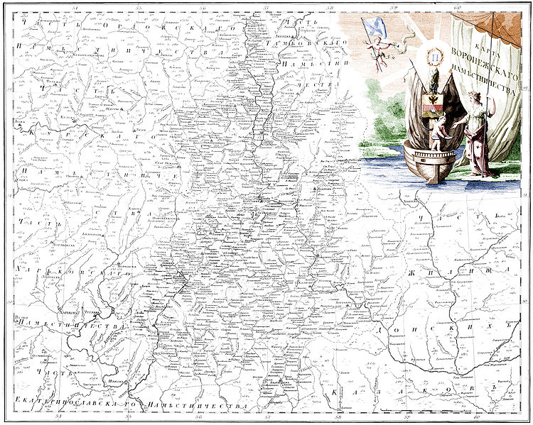 Voroņežass vietniecības karte (1792.). Avots: http://www.redkie.ru/map/Vor_1792.jpg