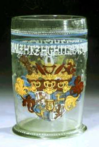 Glāze ar Kurzemes ģerboni Hesenes-Kaseles landgrāfienei Marijai Amālijai, Kurzemes hercoga Jēkaba meitai. Privātkolekcija. Attēls no I.Lancmaņa lekcijas reprezentācijas materiāla.