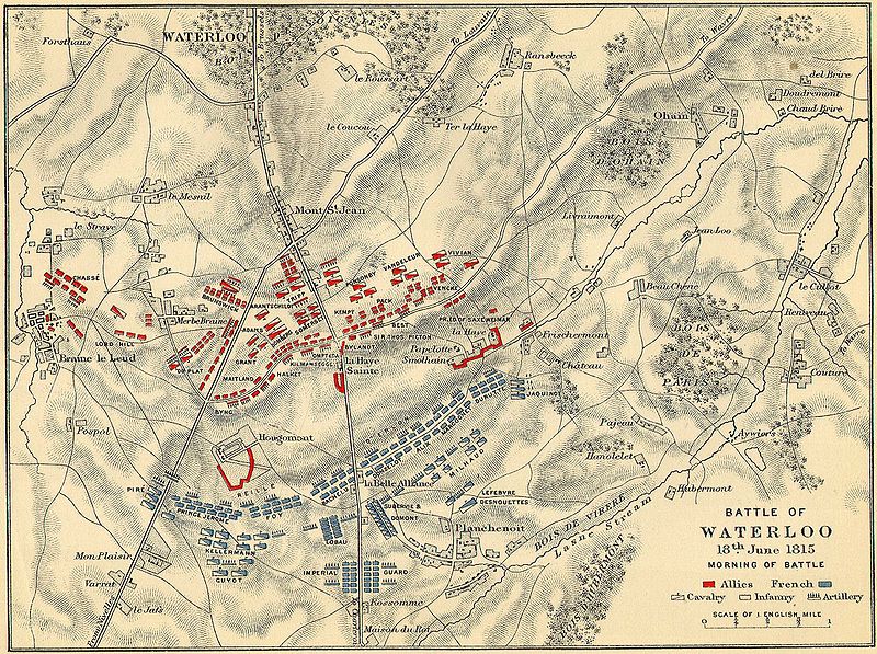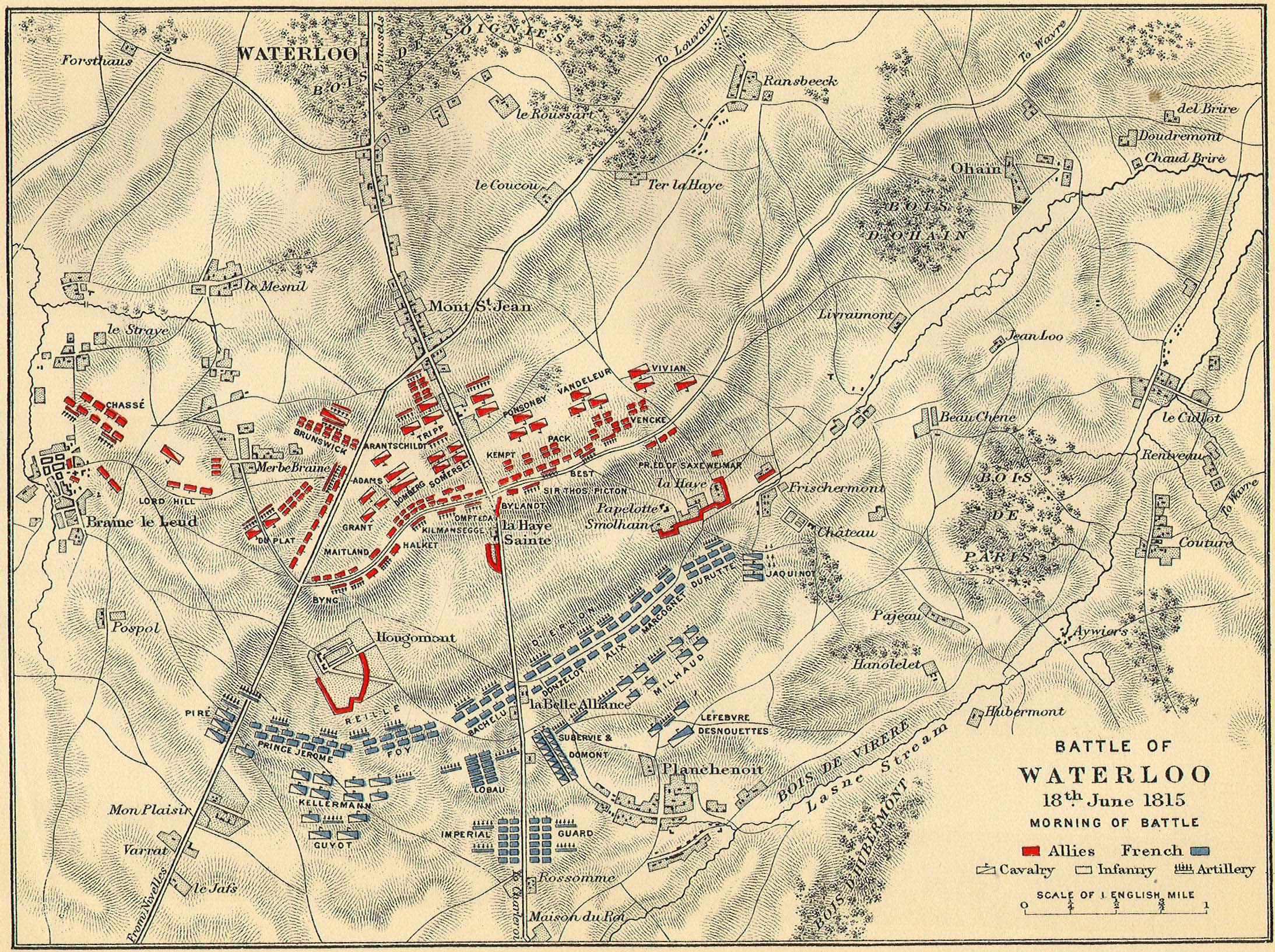 Karaspēka izvietojuma pirms Vaterlo kaujas attēljums kartē.
