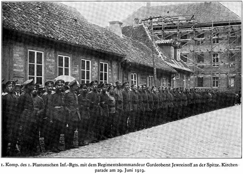 Rietumu brīvprātīgo armijas 1. kājnieku izlūkbataljona karavīri. 1919. gada 29. jūnijs. Fotogrāfijas autors nav zināms, avots nav zināms - attēls ņemts no: http://patrio.org.ru/index.php?showtopic=3762