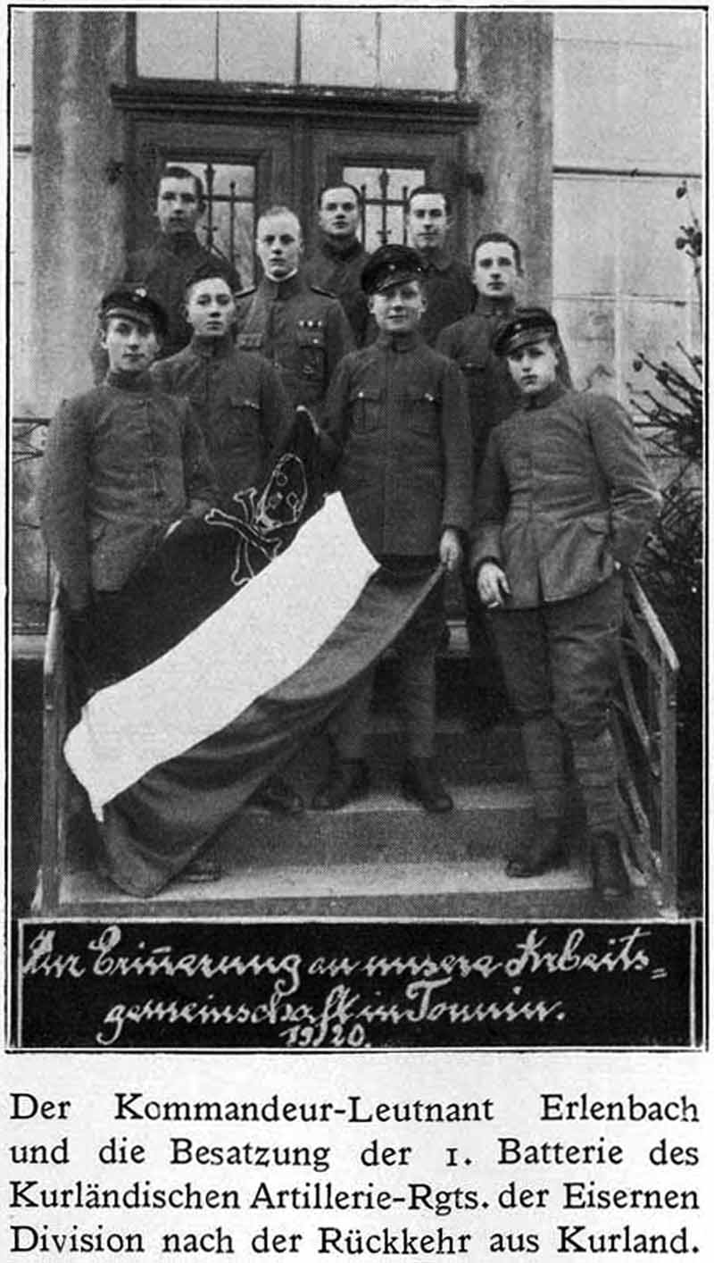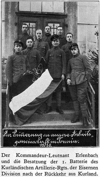 Rietumu brīvprātīgo armijas Kurzemes artilērijas diviziona 1. baterijas karavīri, 1920. gads. Fotogrāfijas autors nav zināms, avots nav zināms - attēls ņemts no: http://patrio.org.ru/index.php?showtopic=3762