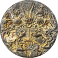 - Kurzemes hercoga Gotharda ģerbonis. Zīmējums no Kurzemes hercogistes baznīcas likumu krājuma, 1570. g. - Latvijas Valsts Vēstures arhīvs (LVVA), 4038. f., 2. apr., 930. l.