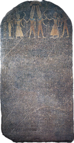 Merneptaha stēla - Jaunās valsts XIX dinastijas faraona Merneptaha (1284.–1204. g.p.m.ē.) iekarojumus slavinoša stēla (pelēks granīts), kurai izmantota senākas, Amenhotepa II darbus slavinošās stēlas otra puse. Plašāku uzmanību piesaistījusi ar to, ka tas ir pirmais rakstītais avots, kurā parādās vārds "izraēļi" ("I-S-R-R"). Stēlu atrada Flainders Petri (Sir William Matthew Flinders Petrie; 1853.-1942.) 1896. gadā seno Tēbu drupās (mūsdienu Luksoras tuvumā). Tā attiecas uz faraona Merneptaha valdīšanas piekto gadu (~1208./1207. g.p.m.ē.). Slavinošais teksts vēsta par to, kādus ienaidniekus faraons uzveicis, kādas zemes iekarojis, nodrošinot savai zemei un pavalstniekiem mieru un labklājību. Teksts pamatā veltīts faraona kariem ar tā laika nopietnākajiem ienaidniekiem - lībiešiem rietumos un t.s. jūras tautām, beigās pieminot, ka nostabilizēta arī robežsituācija ar Hetu valsti ziemeļos un ieviesta kārtība Levantes provincēs. Jau pats fakts, ka tik nesvarīgu politisku jautājumu kā Kanaānas pilsētu "nomierināšanu" un perifērijas nomadu izdzenāšanu jāpiemin faraonu slavinošā stēlā liecina, ka Senās Ēģiptes pozīcijas reģionā bija stipri sašķobījušās un nebija ne tuvu vairs Ramzesa II laika vareinībai, kāda bija pirms pāris gadu desmitiem, ka tās varā bija viss reģions līdz pat Mazāzijai.