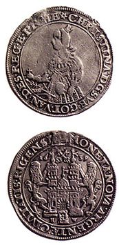 | 2008. gada 11. jūlijs, plkst. 10.55 | Dalderis Riga 1639.jpg (fails) | 31 KB | Dālderis. Kalts Rīgā 1639. gadā Zviedrijas karalienes Kristīnas valdīšanas laikā. Sudrabs. Diametrs 44 mm. CVVM 179803 - Latvijas Nacionālais vēstures muzejs.<br> Attēls ņemts no: http://www.history-museum.lv/pages/krajums/numismatika.php | 1 | |