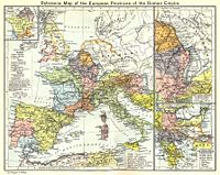 | − | [[Attēls: | + | [[Attēls:Roma_provinces.jpg|right|thumb|200px|Romas impērijas Eiropas provinces.]] |
