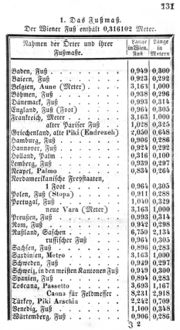 | 2011. gada 26. maijs, plkst. 09.28 | Fuß 1848.jpg (fails) | 470 KB | * "Pēdas" (garuma mērvienība) parametri dažādās zemēs XIX gs. vidū. * Avots: Dr. Franz Mozhnik: Lehrbuch des gesammten Rechnens für die vierte Classe der Hauptschulen in den k.k. Staaten. - Verlage der k.k. Schulbücher Verschleiß-Administration | 1 | |