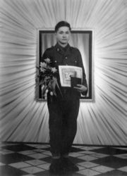 | 2011. gada 28. maijs, plkst. 16.20 | Evalds.jpg (fails) | 1,1 MB | * Attēlā: jauniesauktais leģionārs * Fotogrāfs: foto studija Jānis (...)iņš, Rīgā, Latgales ielā 3 * Datējums: ? * Izmērs: 72x105 mm * Apraksts: Otrā pusē padzisis fotostudijas zīmogs; ar pildspalvu rokrakstā rakstīts: "Ainai no brālēn | 1 | |