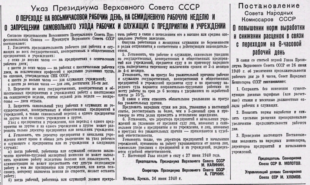 | 2020. gada 26. jūnijs, plkst. 09.53 | Ukazs par 7 dienu darba nedelu.jpg (fails) | 396 KB | 1940. gada 26. jūnija ukazs par pāreju uz septiņu dienu darba nedēļu un astoņu stundu darba dienu. | 1 | |