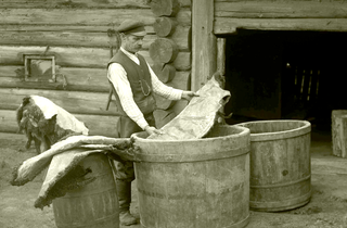 - Ādminis Donāts Vaivods darbā pie zvērādu apstrādes Rēzeknes apriņķa Vidsmuižas pagastā. 1926. gada vasara.