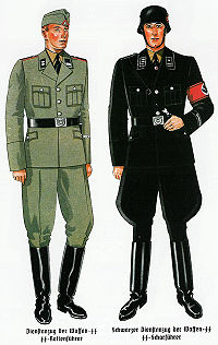Schutzstaffel jeb SS - elitāra NSDAP iekšēja paramilitāra struktūra - sākotnēji izveidota kā apsardzes dienests, pēc tam daļēji pārņēmusi likumizpildes funkcijas, pēc tam transformējās par autonomu, sarežģīti strukturizētu nacistu organizāciju, "valsti valstī", pakļautu tikai fīreram - t.s. "melnais ordenis". 1925. gada aprīlī A.Hitlers uzticēja SA (Sturmabteilung) aktīvistam Juliusam Šrekam izveidot īpašu augstāko partijas funkcionāru apsardzes dienestu kā atsevišķu SA struktūru. 21. septembrī J.Šreks izsūtīja apkārtrakstu visām NSDAP nodaļām par SS grupu izveidošanu - katrā nodaļā jānokomplektē 10 cilvēku lielu grupu, bet Berlīnē 20 cilvēku grupu. Šīs vienības atradās tiešā SA štāba vadītāja Franča Pfefera fon Salomona pakļautībā. Lai atšķirtos no SA, jaunajai struktūrvienībai ieviesa melnas uniformas (sākumā tikai melnus kreklus). Par pirmo SS komandieri kļuva Jozefs Berhtolds. 1926. gadā partijas kongresā Veimārā A.Hitlers pasniedza SS t.s. "asins karogu". 1934. gada 20. jūlijā tika izdota A.Hitlera pavēle, saskaņā ar kuru SS tika pasludināta par autonomu organizāciju, kura pakļaujas tikai fīreram. 1927. gadā par SS komandieri kļuva Erhards Haidens. 1929. gada 6. janvārī Haidena vietā par komandieri tika iecelts Heinrihs Himlers. Viņa vadībā organizācija sāka strauji attīstīties gan kvalitatīvi, gan kvantitatīvi: